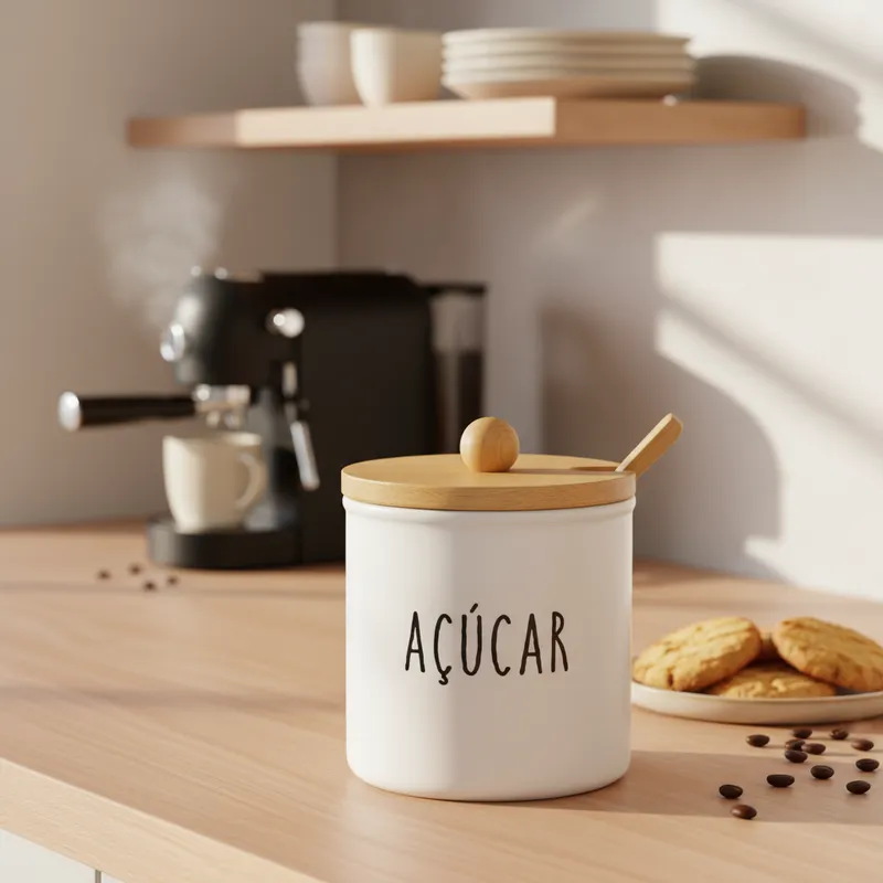 Seu acabamento branco fosco proporciona um visual moderno e delicado. A tampa de bambu com encaixe para a colher oferece praticidade no dia a dia e ajuda a manter o conteúdo protegido e sempre à mão.