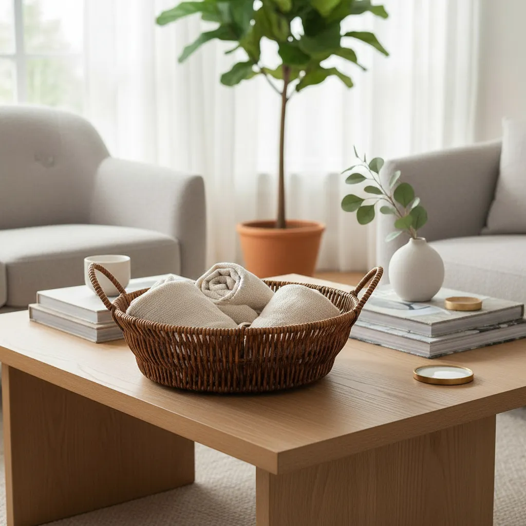 Cesto redondo decorativo com acabamento trançado e alça, ideal para organização e decoração de ambientes. Feito em plástico resistente, une leveza, durabilidade e estilo. Pode ser usado para armazenar pequenos objetos, organizar prateleiras ou complementar a decoração de forma prática e charmosa.