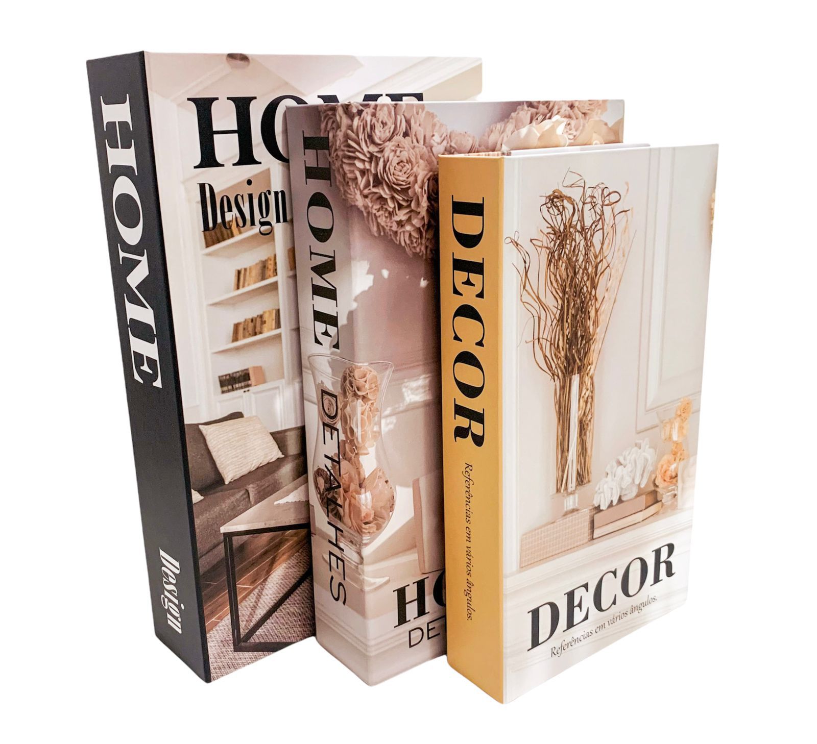 Conjunto de 03 caixa de livros está super na moda, são o apoio perfeito para outros itens decorativos pois o papelão é de capa dura, serve como objeto de decoração para mesas de centro, aparadores estantes e todo cantinho que tiver precisando de um Up na decoração. Ao mesmo tempo que organiza e armazena objetos que não se quer deixar a vista, como fotos, baralho, controle remoto, maquiagens, joias etc...